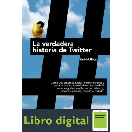 Por ser contenido digital no se aceptan devoluciones salvo en algunas excepciones, conoce más en el siguiente enlace: Envios y devoluciones.Desde fuera, la red social Twitter semeja ser la habitual compañía sin inconvenientes y que disfruta de su localización en Silicon Valley. Su comienzo solo representa uno más de entre las muchas pequeñas empresas tecnológicas que terminan logrando un éxito desmesurado: un conjunto de jóvenes programadores fundan una compañía con la esperanza de volverse ricos y mudar el planeta. Y lo logran.Pero Twitter no se formó de la forma que se nos ha hecho opinar. Más bien es al revés, fue una historia de traición, de inversores malévolos y de luchas de poder que terminaron con la expulsión de los creadores de Twitter, de directivos ejecutivos, empleados, inversores y de miembros del consejo. Este bestseller, escrito por el cronista de The New York Times Nick Bilton y que en poquitas semanas ha alcanzado los primeros puestos de las listas estadounidenses, narra todas y cada una de las artimañas de esta trama que tuvo como objetivo degustar la fama, la repercusión, el poder y el dinero, y define a una generación en la que los ingenieros de software se han transformado en celebridades de fama mundialTe recomendamos ver nuestro tutorial con imágenes aquí: COMO COMPRAR